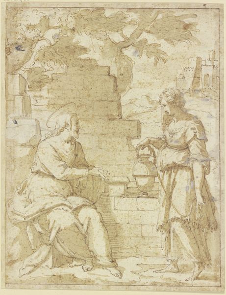 This drawing, now at the Statens Museum for Kunst, was made anonymously in preparation for Jacopo Bassano’s "Cassola altarpiece.” It's rendered in pen and brown ink, heightened with white, on gray paper. The material qualities of the paper support the artist's process of design, as they’re conducive to layering and adjustment. The artist has used the pen to explore the relationship between line and volume, building up the figures of John the Evangelist and Bartholomew with subtle hatching and cross-hatching. The white heightening is used selectively to create highlights and add a sense of depth. In this case, the paper isn’t merely a passive support, but an active participant in the creative process. Its texture and color influence the appearance of the drawing, giving it a subtle warmth and depth. The artist has exploited these qualities to create a work that is both technically accomplished and visually appealing, demonstrating the importance of understanding materials and making in art historical interpretation.