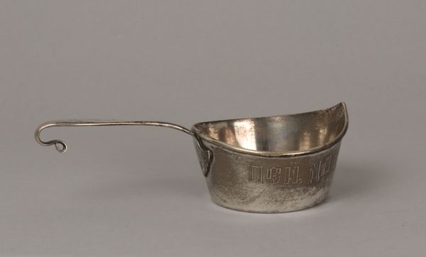 Curator: It strikes me as being somehow utilitarian yet elegant; quite the paradox. Editor: We're looking at a "Toddy Warmer" crafted between 1720 and 1721, now held in the collection of the Metropolitan Museum of Art. It's an object of decorative art fashioned from silver, featuring a turned wood handle. Curator: Ah, yes, "Toddy Warmer"—already the name conjures images of conviviality, perhaps gatherings of gentlemen discussing politics or literature by the hearthside. Editor: Indeed. This object speaks of ritual, of comfort. The silver suggests prosperity, but it is really a statement of control. Hot toddies, after all, were very fashionable for a burgeoning merchant class trying to emulate the gentry and nobility in manners and health practices. They used these objects to reinforce ideas around social identity and the status that went along with consuming specific foods, at particular temperatures, from a material that communicated affluence. Curator: Silver carries considerable symbolic weight, even outside its material value. Reflectivity is so key. Throughout history, it's connected to purity, to the moon, to reflective self-awareness. A lot of cultures across the world connect it to the feminine too, but then you look at how the consumption and the economics were so heavily dominated by males, and one must acknowledge the implicit structures of power in everyday use. The curved wooden handle juxtaposes quite well with the cylindrical container, so simple and spare. The slight flare towards the top, that band near the base – a conscious baroque detail. Editor: Agreed. Silver's been long valued for its antimicrobial properties as well – linking luxury to supposed good health, an ideology which continues even today. You can definitely sense its use as an everyday tool meant to perform rituals of domesticity that carried particular gendered associations. It also looks remarkably modern, doesn't it? Deceptively clean and unadorned, you might even miss it. Curator: Exactly! In the humblest objects reside the most complex cultural narratives. Editor: A reminder, perhaps, that luxury isn't just about opulence; it can be subtly woven into our routines, speaking volumes about societal structures and the construction of identity.