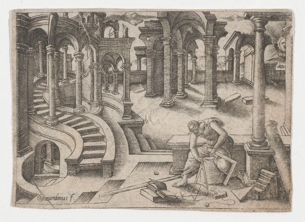 This print, Antigonus gedood door de wacht, was made by an anonymous artist, using the process of woodcutting. The technique involves carving an image into the surface of a block of wood, leaving the design raised. The block is then inked and printed onto paper. This approach allows for strong contrasts and bold lines. Notice how the artist has used these qualities to convey the drama of the scene, the intricate textures of the architecture, the armor of the guards, and the expressions of the figures. Woodcut prints were often used for illustrations in books, pamphlets, and broadsides. The relative ease and cost-effectiveness of the woodcut process meant that images could be widely disseminated, making it a medium closely linked to the rise of mass communication. This print is no exception, allowing for the story of Antigonus to reach a wider audience. Considering the materials and processes used in its production deepens our understanding of the work’s historical and cultural context. It highlights the crucial role of craft and technology in shaping artistic expression.