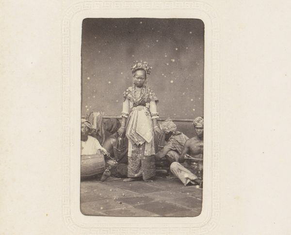 This photograph, by Woodbury & Page, depicts two Indonesian children with carrying baskets. It's a simple albumen print, meaning the image was captured on paper coated with egg white. A process popular in the 19th century for its crisp detail. Note the texture of the woven baskets. These are not just props, but a key element. We can consider the labour that went into their making. Woven by hand, perhaps by the children's own families, they represent a traditional craft. This is starkly different from the modern, mechanical process of photography itself, an imported technology. The image, then, presents a contrast: the traditional, local craft of basket-making versus the industrialized, colonial technology of photography. The children, positioned between these two worlds, embody this tension. Photography, often seen as a fine art, here intersects with the everyday craft of basketry, highlighting the social and economic realities of colonial Indonesia. This photograph reminds us that even seemingly simple images are embedded with complex histories of labor, materials, and cultural exchange.