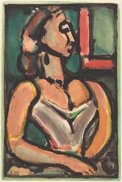 Curator: Stepping up to the canvas, we're met by Sir Matthew Smith's "The Young Actress," housed here at the Tate. Immediately, I'm struck by the raw, almost theatrical energy in her gaze. Editor: There's a beautiful sadness there, too, wouldn't you say? The colors are so vibrant, but her expression seems like she's holding back tears. Or maybe she's contemplating a role. Curator: Indeed, Smith was fascinated by capturing these complex emotional states, and he situated his figures within a lineage of female representation in art that is so often one dimensional. The question of whose gaze this painting serves is also key. Editor: I love how the brushstrokes are so loose, almost unfinished. It gives it a sense of immediacy, like we're catching her in a private moment. Almost as though she's practicing a performance. Curator: Exactly, it's a painting that invites us to consider the multifaceted nature of identity and representation, particularly within the context of performance and the male gaze. Editor: It makes you wonder, what stories she has to tell. Beautiful. Curator: Absolutely, it's a work that stays with you.
