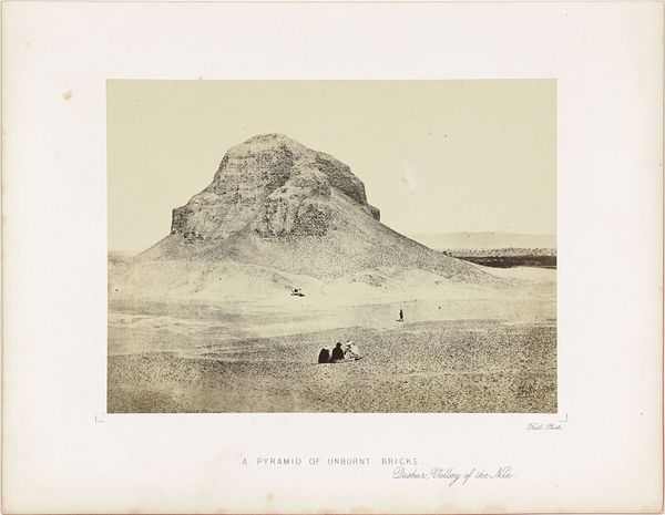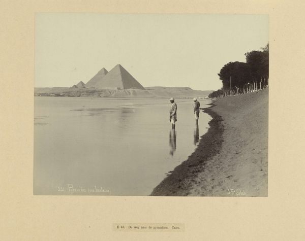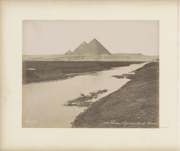 This photograph of the pyramids of Giza was taken by Antonio Beato. The sepia tones and the wide format create a sense of timelessness and serenity. The composition is divided into horizontal layers, from the riverbed in the foreground to the pyramids silhouetted against the pale sky. What draws the eye is how Beato used the pyramids as geometric forms against the natural landscape. The stark lines of the pyramids contrast with the meandering river and the undulating dunes. This interplay between geometry and nature invites a reflection on the relationship between human construction and the natural world. The pyramids are not merely architectural marvels but become semiotic markers, pointing to ideas of power, permanence, and human ambition. Beato’s photograph uses these formal elements to prompt a deeper meditation on history.
