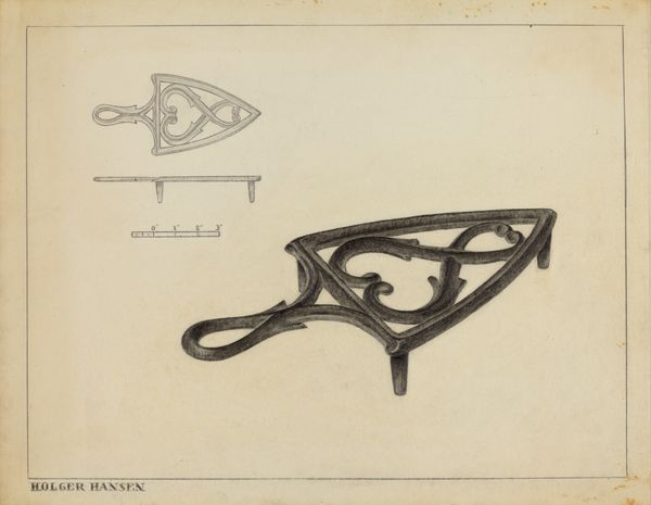 Mildred Ford made this drawing of a toast rack, with graphite on paper, at an unknown date. It's like looking at a ghost of a thing, isn't it? The artist isn't trying to trick us. There's a plan view up at the top of the page, which doesn't line up with the drawing of the toast rack itself. I love that. It's so honest. The soft grey of the graphite is spread unevenly across the page. You can see the direction of the strokes, like looking at the weather. A drawing like this is about process. Each line is felt, each choice visible, not hidden by the desire to make a perfect, realistic image. Ford is not trying to sell this object to us. There's a kind of generosity in the artist sharing this with us, showing how an ordinary object can be seen and understood in a new way. Like the drawings of technical objects made by Léger, this drawing transforms our view of the world we inhabit.