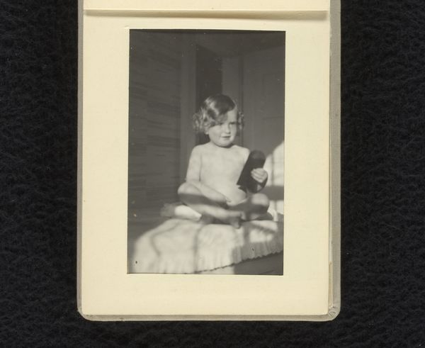 This photograph, taken by a member of the Wachenheimer family in Munich between 1929 and 1931, captures Isabel Wachenheimer as a little girl in her bedroom. It’s a simple black and white image, focusing on the subject with a directness that feels both intimate and a little detached, almost clinical. What strikes me is the texture of the photograph itself. It’s not just about the image, but about the paper, the slight graininess, the way the light catches on its surface. The soft greys and stark whites create a subtle tension, like a quiet hum beneath the surface. Look closely at the girl's hair; see how the light defines each curl, making it almost sculptural. This attention to detail brings a sense of depth and presence to the photograph. The overall feeling is one of stillness, but there's also a sense of anticipation, like something is about to happen. This reminds me of some of the early photographs by artists like Walker Evans, who captured everyday moments with a similar sense of quiet observation. Art is like looking at a fragment of the world, where the meaning is fluid and always open to interpretation.