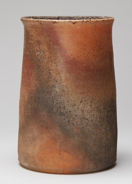 Nonomura Ninsei produced refined pottery decorated with colorful enamels and his style exerted enormous influence on other ceramists active in Kyoto during the seventeenth and eighteenth centuries. In addition to this highly decorative style, Ninsei also created a number of works that more closely reflected the subtle styles traditionally associated with the tea ceremony. This tall flower vase reflects his interest in earlier ceramics produced in Seto, near Nagoya. The thick application of iron rich glaze resulted in a deep brown surface and the interesting "accidental" drip effect.
