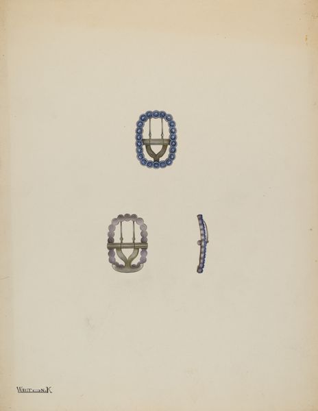 These designs for women's buckles were made by Charles Criswell, who lived between 1855 and 1995. Although we don’t have the exact date of the design, we can consider the historical context of Criswell’s life. Born in the latter half of the 19th century, he would have witnessed significant changes in women's fashion and social roles. Buckles, seemingly small objects, were important accessories, reflecting prevailing tastes and class distinctions. The design itself, with its delicate detailing, hints at the emphasis on ornamentation common in women's fashion during the late 19th and early 20th centuries. To fully understand the significance of these buckles, one might consider the socio-economic conditions that shaped consumer culture at the time. Archival sources such as fashion magazines, trade catalogs, and social histories can offer insight into the intended market for these designs.