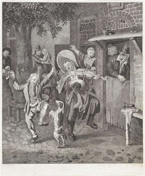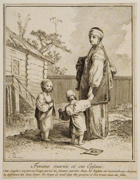 Christina Chalon made this etching called "First Steps of a Child" sometime in the late 18th century in the Netherlands. This image shows us more than just a charming domestic scene. It invites us to consider the social values attached to childhood and family life at the time. Notice the expressions of encouragement and support from the surrounding figures. This emphasis on the child's development reflects broader Enlightenment ideals about education and the cultivation of virtue. Through the window, even the dog is watching the scene. The etching's composition, with its focus on the family unit within a humble, rural setting, also speaks to the period's changing social landscape. Prints like these circulated widely, shaping perceptions of domesticity and motherhood. To fully understand the significance of this image, one can explore Dutch social history, art market archives, and the artist's biography. We can then better understand the evolving role of women artists in shaping cultural narratives.