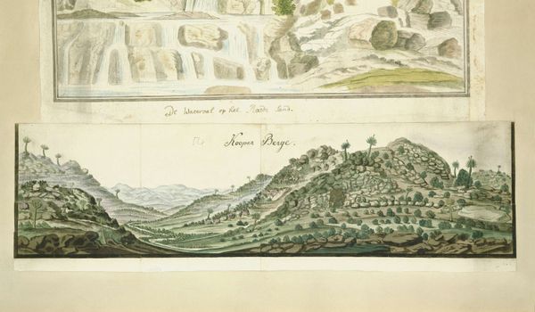 Robert Jacob Gordon captured this Panorama of the Bidouw and Cuinjis Mountains in ink and watercolor. The undulating mountains, repeated in two registers, speak to a deep-seated human impulse to chart and understand our physical world. Consider the symbolic weight of mountains throughout history; they have been revered as the homes of gods, barriers between worlds, and symbols of steadfastness. Here, Gordon's mountains, rendered with almost topographical precision, are softened by the atmospheric perspective and delicate washes of color. One could almost imagine them as a natural echo of the ziggurats of ancient Mesopotamia, structures intended to bridge the gap between the earthly and the divine. This rendering of landscape touches something primal within us. Like the romantic painters of the 19th century, Gordon imbues the natural world with a quiet grandeur, a subtle reminder of the awesome power of nature and our place within its vastness. This image acts as a visual anchor, holding firm the human desire to map, explore, and connect with the landscapes that shape our collective memory.