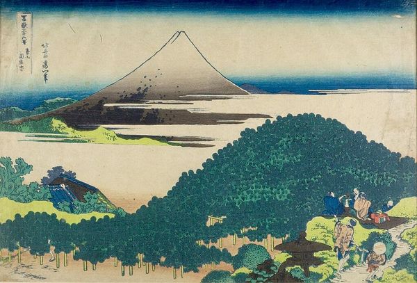 "The Kintai Bridge in Suō Province" was created by Katsushika Hokusai, an artist deeply rooted in the Edo period of Japan, a time marked by relative peace, prosperity, and isolation. This woodblock print subtly navigates the relationship between humanity and nature; the bridge is a testament to human ingenuity amidst the grandeur of the natural landscape. As we observe the figures crossing the bridge, we're invited to consider our connection to the environment and the transience of human existence. This scene may appear tranquil, yet consider the social hierarchy of Edo-era Japan and the roles each person played. Were they merchants, samurai, or farmers? What journeys were they undertaking, and what were their stories? Hokusai creates not just an image but an emotional and experiential space, inviting us to contemplate our place within the larger tapestry of life and history. The bridge becomes a metaphor for connection, both to the land and to each other, during a period of social transformation.