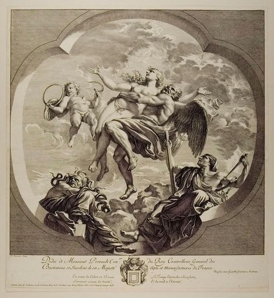 This engraving by Bernard Picart captures an allegorical scene rife with symbolic weight. At its heart, Time carries Truth, rescuing her from Envy and Wrath. Note the ouroboros encircling the putto, the serpent eating its own tail. A symbol of cyclical time and eternity, it echoes through ancient mythologies, from Egyptian lore to Gnostic traditions, signifying the eternal return and the perpetual renewal of existence. Wrath and Envy are visually distinct, yet both represent primal emotional forces. Envy, often depicted with snakes, embodies the venomous nature of begrudging others' fortune, a motif that can be traced back to classical depictions of vice. Meanwhile, Wrath, contorted in rage, mirrors the destructive potential of unchecked anger. These motifs and gestures engage us on a subconscious level. The dynamic composition, with Time ascending, conveys a powerful sense of hope and liberation. These symbols represent timeless struggles and the human quest for truth and eternity. It is not linear but perpetually recurring in our collective consciousness.