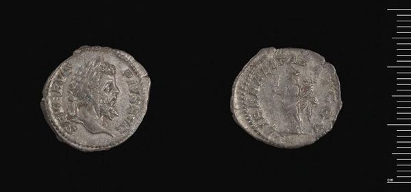 Curator: Here we have a denarius of Caracalla. It's a small silver coin, only about 3 grams, but it carries the weight of an empire, doesn't it? Editor: It looks so fragile, like a fallen leaf retaining a ghost of its original shine. Curator: It reminds us that even powerful emperors need to mint coins to pay the legions and keep the machine of power turning. Editor: Absolutely. The portrait is rather striking. I imagine being handed this. It's a direct line to the emperor, an embodiment of Roman power. Curator: It is a link, both beautiful and brutal, isn't it? Editor: Yes, it's strange to think that something so small could have been handled by so many people. Curator: Each coin a miniature monument, circulating through history. Editor: Ultimately, this little coin makes me ponder how power is crafted and what materials truly matter. Curator: For me, I see not just currency, but a tangible echo of a life lived in immense power.