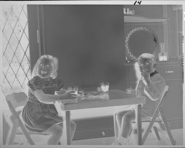Paul Gittings created this black and white photograph of a mother and child, sometime in the mid-twentieth century. The scene depicts a mother kneeling beside her daughter, who is sitting in a high chair, ready to cut her first birthday cake. This image speaks to the cultural emphasis on family and domesticity prevalent in the post-war era, especially in America. It captures a seemingly intimate moment, yet its staged quality suggests a deliberate construction of idealised family life. The photograph’s formal composition, with the mother and child carefully arranged, raises questions about the performative nature of such domestic scenes. Was it commissioned for a family album or perhaps even for publicity? To understand its full context, one might research the history of family photography, consumer culture, and gender roles during this period. By exploring such avenues, we can appreciate how the photograph reflects and shapes our understanding of social values.