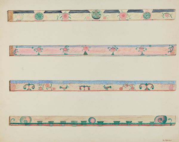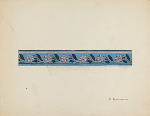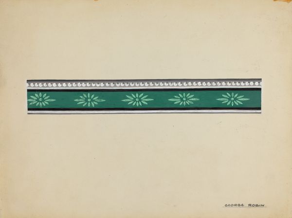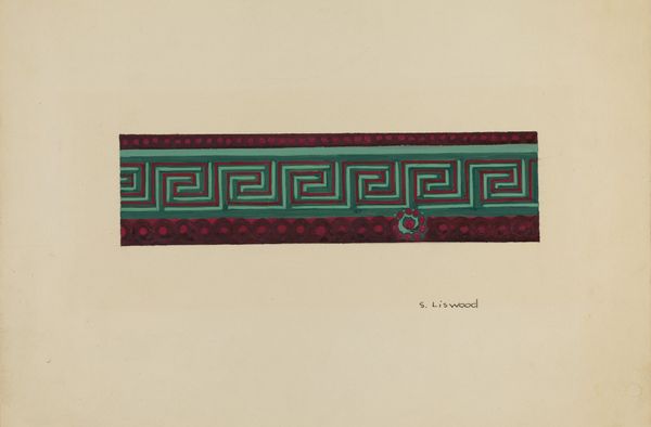 Paul Farkas created this design for a wallpaper border at an unknown date. The design features stylized floral motifs alternating with geometric shapes, all rendered in a palette of dark green, burgundy, and teal. These recurring patterns carry a historical weight, echoing motifs found in ancient friezes and textiles. Consider how similar floral patterns appear in Minoan frescoes or Persian carpets, symbolizing life, fertility, and prosperity. The adaptation of natural forms into abstract designs speaks to a human desire to impose order and meaning onto the natural world. This impulse is embedded deep within our collective consciousness. The cyclical repetition of the design taps into our innate sense of rhythm and balance. This resonates with our understanding of the world. The wallpaper, once applied, would have transformed a domestic space into an environment imbued with layers of cultural memory and symbolic meaning. The non-linear journey of these visual symbols continues, resurfacing in new forms.