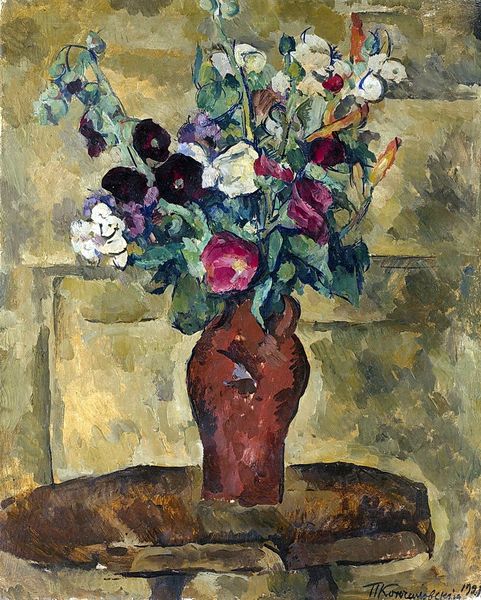 Pyotr Konchalovsky’s "Still Life with Red Gladioli," is a painting full of lively brushstrokes and warm colours. It’s like he built this composition bit by bit, stroke by stroke. What grabs me are those gladioli – the way they jut upwards, so full of life, and the way he’s used thick paint. Look at how the colours aren't blended, but sit next to each other, creating this vibrating, textured surface. It’s like he’s not just painting flowers, but capturing their energy. There’s something raw and honest about that approach, you know? It reminds me a little of Van Gogh, not just in the subject matter, but also in the way Konchalovsky uses paint to express emotion. It's a reminder that art’s always in conversation with itself. It is more of a jumping-off point than a final statement.