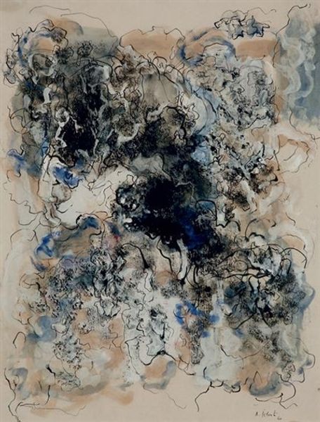 Editor: This is an Untitled painting by Mark Rothko, from 1947. It's an abstract piece using oil on canvas. What strikes me is the overall sense of ethereality. How do you interpret this work? Curator: Rothko’s journey toward pure abstraction wasn't immediate. Pieces like this, from the mid-40s, are fascinating because you see remnants of figuration dissolving into color fields. Notice the almost primal shapes – do they evoke any particular images for you? Editor: I can see something almost figurative... Maybe suggestions of faces or figures hidden within the brushstrokes? Curator: Exactly! Rothko was deeply interested in mythology and archaic symbols. These blurred shapes might represent archetypes, universal figures from the collective unconscious, as Jung described. The muted palette reinforces a sense of ancient memory, almost like faded frescoes in a long-lost temple. Consider how color itself functions as a symbol. The blues and grays can signify introspection, contemplation... a descent into the self. What emotions do these colors evoke in you? Editor: They do give off a solemn and serene atmosphere... A sense of melancholy, perhaps? It’s very evocative. Curator: Indeed. And this melancholy connects to the post-war atmosphere. Artists grappled with expressing trauma and existential angst. Rothko used these symbolic forms and colors to tap into those feelings, giving them a visual language that bypasses literal representation. It makes me think about how cultural anxieties can be absorbed into these shapes and colors, projecting a larger universal narrative. Editor: I've always understood his work to be very pared down. I didn't realise there was so much in his history with mythology, pre-abstraction. Curator: And yet, they endure – the myths and shared feelings, rendered in what at first seems so purely abstract! This piece teaches us about the power of suggestion, where emotion is summoned, not simply depicted.