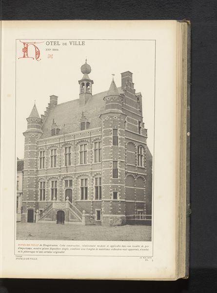 Curator: This collotype print captures the city hall of Bruges, Belgium, sometime before 1887. The stark grayscale gives it a distinctly aged feeling. Editor: Immediately, I’m struck by the density of the architectural detailing, that ornamentation clinging to the structure's surface. It almost obscures the underlying form. Curator: Precisely. Note how the rigid verticals—those long, slender windows and spires—compete with the horizontal stringcourses to fracture the facade. This tension gives it a restless energy, defying the building's grounded stability. Editor: I'm thinking about Bruges itself at this time. Given its history as a wealthy mercantile center, it’s hard not to read this architecture as a deliberate display of civic pride and power projected onto its urban fabric. The intricacy serves as a metaphor for the city's complex political and economic relationships. Curator: That interplay between the city and its image is potent. The play of light and shadow across the ornate Gothic facade softens the harsh edges and provides visual depth, underscoring the print's material qualities too. Editor: And who had access to such representations of Bruges, images shaping perception, promoting tourism? Photography democratized viewing to some extent, yet prints like this reinforced the established power structures through subtle class and nationalistic sentiments. Curator: Intriguing point. However, I remain fixated by the facade's patterned intricacies: the geometry of the windows reflecting sky against the dense carved figures depicting saints or nobles along each tier—a rigorous formal structure despite its perceived busyness. Editor: The print really prompts one to delve deeper into both artistic construction and civic context, doesn’t it? It offers insight into an era when architecture communicated civic identity boldly. Curator: Indeed. Considering this collotype today, its textured surfaces give material form to a city, but in itself becomes part of its history and ongoing life. Editor: Yes, art becomes the medium through which cultural memory continues to evolve.