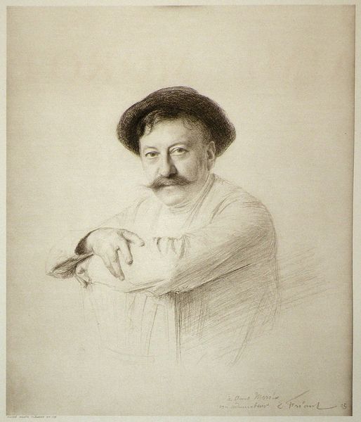 Here we see a lithograph of Albert Einstein by Max Liebermann, a leading figure in German Impressionism. The portrait captures Einstein with a soft focus, characteristic of Liebermann's style, offering an intimate glimpse into the man behind the scientific genius. Liebermann, of Jewish heritage, created this work during a period of rising anti-Semitism in Germany. The artist's choice to depict Einstein, also Jewish and a symbol of intellectual prowess, can be seen as an act of cultural affirmation and defiance amidst growing prejudice. The portrait does not conform to traditional heroic depictions. Instead, it presents a more human, pensive Einstein, perhaps reflecting the complex historical moment and the weight of the scientist's own discoveries. The sensitive rendering invites us to reflect on the complexities of identity, achievement, and the precariousness of belonging during a tumultuous era.