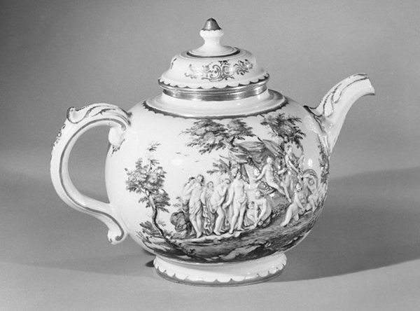 This Oil Pot was made by the Meissen Manufactory in the 18th century. As porcelain was developed in Europe, it became an important medium for art and trade. During this period, aristocratic tastes shaped artistic production. Items like this pot reflected the refined aesthetics and wealth of the elite. Looking at this object, one might consider its function not just as utilitarian, but as a symbol of status. The floral decorations and delicate design suggest a world of leisure and privilege. The spout, formed by a human-like face, gives an impression of power and privilege. It suggests the oil it serves may be a source of wealth, such as that produced by colonialism. How does our appreciation of this object shift when we consider its role within a system of social hierarchy? While beautiful, this oil pot is an artifact of a complex history, intertwined with power, trade, and social class.