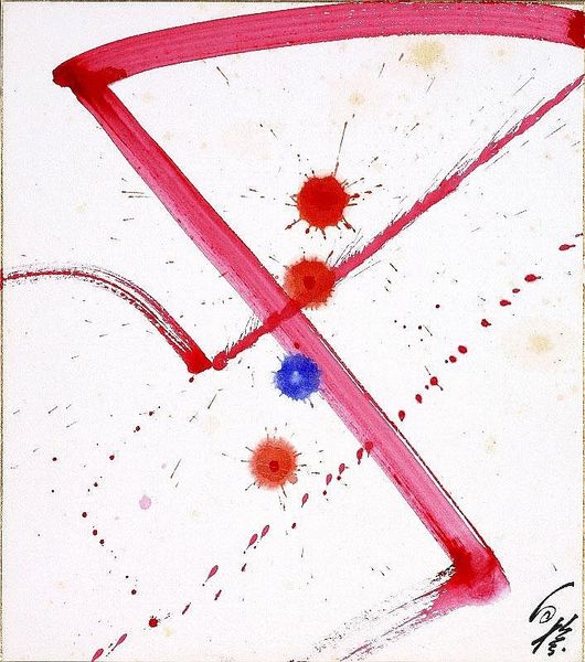 Curator: Looking at this, my first thought is: urgency. Is it the stark white background emphasizing the frenzy of lines, or is it the blood-red streaks cutting through it all? Editor: Indeed. Here we have Cy Twombly's "Sylvae", created in 1981 using mixed media including ink. It's fascinating how Twombly’s mark-making exists in this space between gesture, writing, and raw expression. Curator: Exactly. The word "Sylvae" itself scrawled almost carelessly at the top gives the viewer a place to enter. "Sylvae," from the Latin, relating to woodland, or a collection of writings, really asks us to consider how language and nature are intertwined here. Editor: Right, it invites us to consider themes of the pastoral but definitely twisted by the chaotic present. Notice the date, lower on the right: "7 Aug 81," anchors this explosion to a particular moment, as if he's trying to capture fleeting, yet intense sensations. And that intense splash of red– almost like a wound! Curator: Or the violent bloom of nature unchecked, right? Think of it in the context of art institutions in the '80s beginning to engage with contemporary theory around deconstruction. Is Twombly playing with, or maybe even undermining traditional ideas about the pastoral? Editor: It's that very tension that keeps me hooked. On the one hand we've got this allusion to classicism through the title, a traditional framework of looking at beauty and the natural world. Yet his methods are anything but polished. It's art reflecting the uneasy feeling that comes when we acknowledge society's many masks. Curator: I agree completely! It’s almost like a deconstruction of classical notions of the landscape and representation in general, reflecting the unease present within culture during the 1980s. It's not just a painting; it’s a loaded conversation. Editor: For me, reflecting on the mark of "Sylvae," is that while things look chaotic on the surface, under it all are intentional decisions. Perhaps it serves as a call-to-action to us that while a world seems to crumble, there’s intentional action ready to come alive and bring renewal.