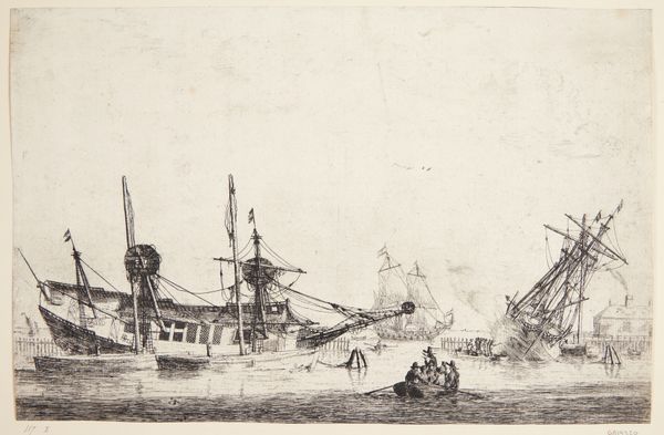 Editor: This is Jan van Goyen's "Flood Landscape with Fishing Boats," created in 1653 using pencil. It feels quiet, almost desolate, yet there's a real sense of the everyday struggles of people. What strikes you about this drawing? Curator: I see a profound engagement with the social and environmental realities of the Dutch Golden Age. Van Goyen wasn’t simply depicting a pretty scene; he was capturing a society grappling with its relationship to water, a resource that was both life-giving and a constant threat. Do you notice how the low horizon emphasizes the vastness of the sky, creating a feeling of vulnerability? Editor: Yes, and the boats seem so small against it. Like they’re at the mercy of the elements. Curator: Precisely! And who are these figures in the boats? Consider the socio-economic implications of their labor. The fishing industry was crucial, yet the work was arduous and often dangerous. Van Goyen subtly acknowledges these often-invisible aspects of 17th-century Dutch life. The economic disparities reflected in this artwork need careful unpacking: while some were benefiting immensely from international trade, others toiled daily under harsh conditions. Editor: So it’s not just a landscape, it’s a commentary on society? Curator: Absolutely. Art doesn't exist in a vacuum. It's intertwined with the power structures, the social anxieties, and the economic realities of its time. The subdued tones and seemingly simple composition belie a deeper exploration of humanity's place within a complex, often precarious world. Editor: I hadn't considered all that. Thanks, it really makes me think about art in a new way. Curator: My pleasure. By connecting art history with contemporary theory, we can unlock so much meaning and spark conversations about who we are and how we relate to the world around us.