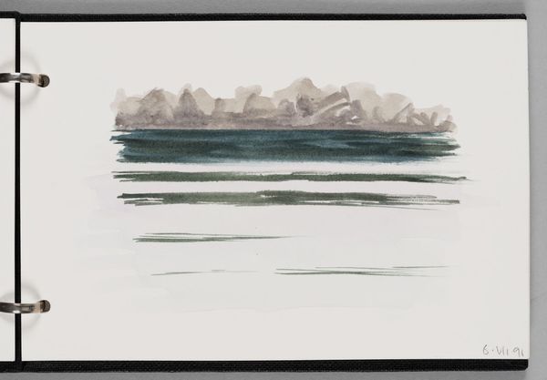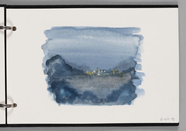 Curator: This delicate watercolor is titled "Seascape, Maine," by Elena Prentice, part of the Harvard Art Museums collection, measuring a modest 12 by 18 centimeters. Editor: It looks like a memory fading into the mist – melancholic, serene, like a half-remembered dream. Curator: The vagueness certainly invokes the artistic license afforded by watercolor, also mirroring the romantic artistic traditions associated with the Maine coast. Editor: The soft blues wash across the page, blurring the line between sea and sky. It almost feels like the landscape is breathing. Curator: It's worth considering how the size of the piece plays into this; a monumental canvas could not achieve the same sense of intimacy. Editor: Absolutely, its charm lies in its subtlety, like a whispered secret from the ocean itself. I can almost smell the salt. Curator: Indeed, a reminder that art's power often resides not in grand gestures, but in quiet observations. Editor: A little jewel of a moment, caught perfectly in blue.