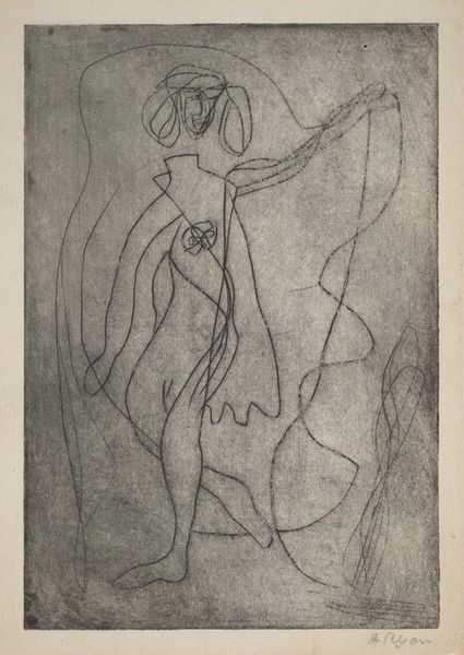 Fannie Hillsmith created this etching, titled ‘The Rose’, in 1946. Hillsmith, a Jewish woman who was deeply private about her lesbian identity, navigated the art world during a period of significant social and political upheaval. In ‘The Rose,’ the artist eschews traditional representations of beauty, developing an alternative narrative of abstraction, perhaps echoing her own feelings of being an outsider. The rose is depicted in a Cubist style, breaking down the familiar form into geometric shapes and lines. The composition, with its fragmented petals and distorted stem, invites us to consider the rose not just as a symbol of love, but also as a complex and multifaceted entity. We might ask ourselves whether the abstraction signals a break from conventional expectations and norms? What feelings does this elicit, what emotions does the image evoke? In its unique representation, this artwork becomes a powerful expression of identity, resilience, and the ability to redefine conventional forms.