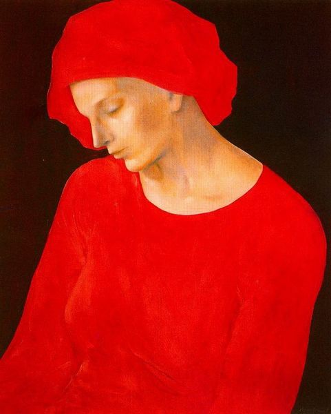This is Tamara de Lempicka’s Polish Girl, painted sometime in the early 20th century, probably with oils on canvas. Look at how she builds the face from smooth, almost porcelain-like surfaces. It’s fascinating because it's all about process, moving from dark to light to create this kind of polished form. You know, when I see this painting, I think about the art deco movement, how it’s all about clean lines and geometric shapes. The black background really makes the girl pop, and the red flowers on her shawl add a touch of warmth to the cool tones of the face. And those hands holding the book – they're so smooth and elegant, like sculptures. I also admire how she balances the softness of the girl's features with the sharp angles of the shawl. The Old Polish Woman by Jan Matejko comes to mind, especially in how both artists capture a sense of dignity and strength in their subjects. Ultimately, painting, just like seeing, is all about how you make something your own.