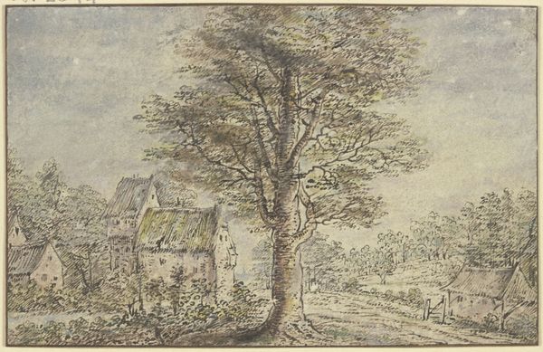 This drawing, "Klosterhof mit betendem Mönch," was created by Pieter Moninckx. The composition, rendered in delicate washes, presents a courtyard scene dominated by trees, whose dense foliage filters light to create a muted tonal palette. The structure's facade forms an intimate space for the praying monk, whose posture indicates humility and devotion. The architectural elements and organic forms divide the scene into distinct areas, drawing the eye. This spatial arrangement is not merely representational; it engages with semiotic codes, referencing the spatial and social structures of religious life. The monk's isolation against the building's stone implies a dialogue between individual piety and institutionalized religion. The drawing, beyond its immediate aesthetic appeal, offers a meditation on the interplay of nature, architecture, and human experience. Its lasting appeal lies in its ability to evoke a sense of contemplation.