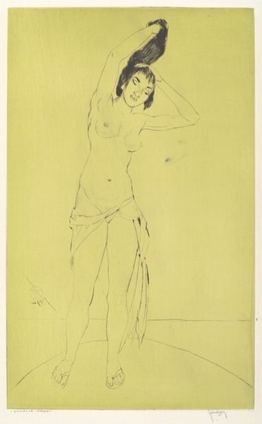 Editor: This drawing, titled "Standing Nude (Back View)," is by an artist imitating Auguste Rodin. It feels so fragile and fleeting. What do you see in this piece? Curator: The back view is significant. It invites introspection, almost forcing the viewer to consider the figure’s inner world. Does the angle suggest vulnerability, or perhaps, a sense of stoic acceptance? Editor: I hadn't considered that perspective. Curator: Often, we project our own feelings onto such figures. The absence of a clear identity turns the nude into a universal symbol. It’s a powerful statement, isn’t it? Editor: Absolutely. Thanks for sharing your perspective!