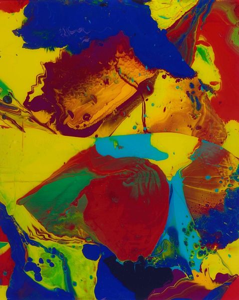 Editor: Here we have Sam Francis's Untitled, created in 1984 using acrylic paint. The vividness of the red, green, and blue is striking. It's almost unsettling in its intensity. What sociopolitical conversations do you think Francis was engaging with when creating such a chaotic piece? Curator: That's a great question. We need to understand the historical context of 1980s America to understand Francis's art, which he created near the end of his career. We were moving deeper into Reaganomics, amidst the backdrop of the AIDS crisis, with growing awareness of social injustices and inequalities. Think of artists at that time wrestling with expressing outrage, powerlessness, or seeking moments of freedom. Does this painting evoke a sense of resistance or escape to you? Editor: Resistance is an interesting concept to introduce in the context of abstraction, because on first look there’s no explicit socio-political reference. But now I’m wondering if the very act of abstraction could itself be seen as resisting prevailing conservative aesthetics. I wonder, in this riot of colour, if there might also be a subversive intent? Curator: Exactly. The scale, the color choices, and the lack of representational forms can all be read as a deliberate disruption. Color field painting moved toward prioritizing feeling over objective representation, giving rise to new opportunities for discourse about individual liberation and collective empathy, moving away from traditional landscapes that upheld conventional aesthetics of power and order. But is this disruption necessarily 'political'? What do you think? Editor: I think it's about perspective. For some viewers, it might be simply about the visual experience. But, situating this piece in the 1980s helps bring another dimension, another intention. Curator: Precisely. Art becomes more potent when understood through its context and intersectional narratives. Considering this lens changes everything. Editor: Definitely gives me a lot to think about regarding abstraction. Curator: To me too, it is essential that we situate art historical analysis in connection to contemporary social issues, enriching not only our understanding of the art, but the past and the present.