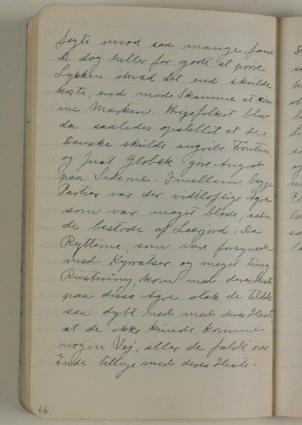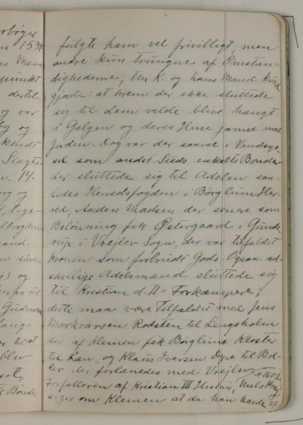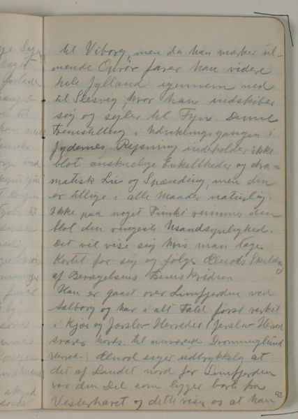 Curator: At first glance, the dense script and aged paper create an almost palpable sense of history. It has a quiet intimacy. Editor: That's a sensitive initial response. The work before us is entitled "Notater vedrørende Ælnods saga om Knud den Helliges færd i Vendsyssel. Uddrag fra Historisk Tidsskrift, Hans Olrik," or, "Notes on Ælnod's saga on Knud the Holy's journey in Vendsyssel. Excerpt from Historical Journal, Hans Olrik," by Niels Larsen Stevns, created between 1933 and 1934. What draws you to it, formally? Curator: The composition itself—a rectangle filled with handwritten text in ink on paper—speaks to the labor involved, not just in its creation but in the historical record itself. Each stroke is evidence of someone's dedicated work. The artist is using drawing, in the service of history-making as he copies or perhaps studies an existing work, extracting segments of knowledge. Editor: You’re right; the visual rhythms of the calligraphy guide the eye, even if we can't decipher the Danish. See how the dark ink contrasts against the yellowed paper. It emphasizes its textural qualities, its almost fragile materiality. Consider too how that act of transcription you noted emphasizes the text’s structural importance. What function do you feel that serves here? Curator: Well, by re-writing it, he is also actively participating in interpreting history. Perhaps even solidifying a specific historical narrative or using historical accounts to convey his own societal concerns. Editor: It brings into question the relationship between handcraft, intellectual pursuit, and art-making. It pushes boundaries in fascinating ways, particularly with regard to consumption of cultural material. What are your closing thoughts about this small artwork from the collection of the SMK, the National Gallery of Denmark? Curator: Stevns challenges our notions about what constitutes historical evidence. He makes it intimate and almost tender, inviting us to consider the social process. Editor: It highlights the way historical meaning is communicated formally, materially, visually, and it resonates deeply.