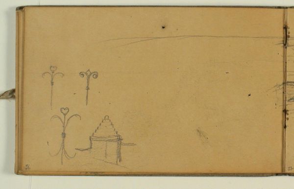 Editor: Here we have "Ornamentstudier" by Niels Larsen Stevns, created sometime between 1900 and 1904. It looks like a page from a sketchbook, featuring pencil and maybe some coloured pencil on paper. There’s something so raw and immediate about seeing these initial ideas laid out. How would you approach interpreting a piece like this? Curator: The materiality of this sketchbook page is key. It's not just about the decorative designs themselves but the very act of creation, the labor involved in producing these ornaments. Think about the social context – this is Art Nouveau, a movement reacting against industrial production, yet these sketches might be intended for mass production. Do you think this contradiction matters? Editor: Absolutely, it complicates things! On the one hand, you have this handmade quality in the sketches, but the end goal could be something manufactured on a large scale. Curator: Exactly! Consider the tools: the pencil, the paper. They were becoming more widely available, impacting who could create art. What was previously confined to workshops could now be explored by a broader segment of society. Editor: So, seeing these drawings less as finished artworks and more as a record of a process within a specific economic and social framework. Curator: Precisely. These "ornament studies" point towards the complex interplay between handmade production, industrial potential, and shifting class dynamics at the turn of the century. Editor: I hadn’t considered that. It reframes the way I see these decorative designs; they’re not just pretty, but speak to broader production possibilities. Thank you! Curator: Indeed! It reveals how an apparently simple sketch reveals this convergence of material practices and broader social changes.