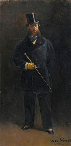 This is James McNeill Whistler's oil on canvas painting, *Alexander Arnold Hannay*. The canvas reveals a muted palette, predominated by shades of brown and black. The figure emerges softly from the background, achieved through delicate and almost indistinct brushstrokes. The composition emphasizes the verticality of the figure, contributing to a sense of formality. Whistler was interested in producing art for art's sake, focusing on aesthetic arrangements rather than narrative content. Here, form supersedes detail, a characteristic of Whistler’s aesthetic approach. The haziness of the image is reminiscent of the Symbolist movement, where suggestion is preferred over explicit representation. Whistler subtly invokes a mood that invites viewers to contemplate the interplay between visibility and obscurity, challenging traditional portraiture. Ultimately, Whistler invites us to focus on the aesthetic qualities of painting.