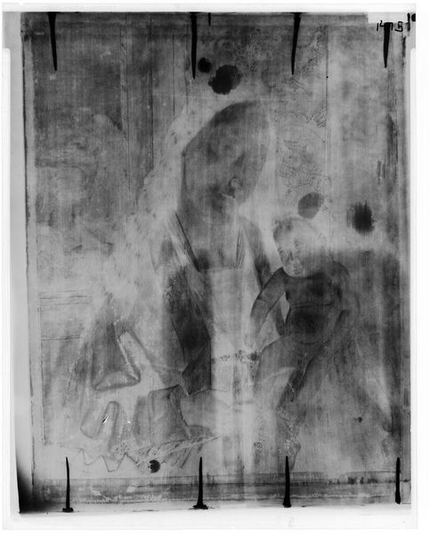 Curator: This is an X-radiograph of "Madonna and Child," originally painted by Sébastien Bourdon. It’s ghostly, isn’t it? Editor: Intensely so. It almost feels like a spiritual photograph, revealing what's hidden beneath the surface of a traditional Renaissance narrative. Curator: Right? Seeing the underpainting through this lens makes me feel like I'm glimpsing Bourdon's process, his initial vision. Editor: It makes one consider what that vision means. How does it connect to the role of women and children in religious doctrine? What about the unseen labor? Curator: Absolutely! It's like peering through time, watching a master at work, layer by layer. Editor: The art world has so many layers itself; this makes me consider the implications for our contemporary moment. Curator: I love that. It takes a familiar image and defamiliarizes it, and reveals something new. Editor: Indeed. It shows how art can reflect and refract the complex realities of faith and power.