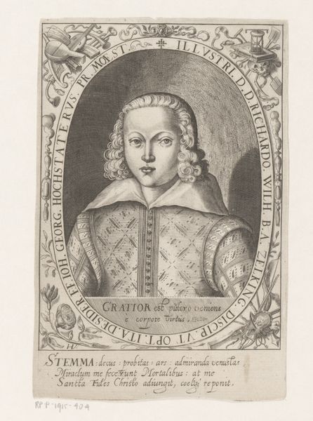 This engraving of Marie-Anna of Austria by Simon de Pas captures the formality and detail typical of 17th-century portraiture. The composition is structured around an oval frame, within which the figure is meticulously rendered. The stark contrast between light and shadow, achieved through fine, dense lines, gives depth to Marie-Anna’s face and attire. Her elaborate ruff and ornamented dress display a fascination with texture, creating a visual hierarchy where surface detail signifies status. The surrounding inscription, carefully integrated into the design, not only identifies the subject but also frames her within a matrix of power and lineage. The intricate linework and dense patterning serve as a semiotic code, communicating the subject's noble identity and the values of her time. Such formal elements underscore how art functions as both representation and ideological construct.