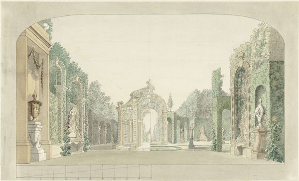 Jacques de Lajoüe created this delicate watercolor titled "Study for a Stage Set." It’s a window into the world of 18th-century French theater design. During Lajoüe’s time, theater wasn’t merely entertainment; it was a powerful reflection of societal values, class structures, and gender roles. Stage designs like this one were crucial in setting the tone and reinforcing the social hierarchy. Notice the classical architecture, the statues, and the carefully arranged figures. These elements were intentionally used to evoke a sense of grandeur and order, reflecting the values of the aristocracy. The artifice of theater extended beyond the stage, influencing fashion, manners, and even political discourse. Consider how stage design, like any art form, had the power to both uphold and question the status quo. Lajoüe’s artwork invites us to reflect on the performance of identity, and the ways in which constructed environments can shape our perceptions.