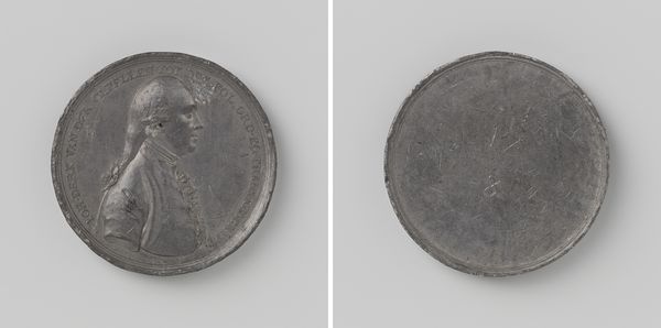 This medal was made by Adriaan Bemme to honor Willem Frederik George Lodewijk, the hereditary prince of the Netherlands. At just over 4 centimeters in diameter, and weighing nearly 75 grams, it’s made of cast lead, a relatively inexpensive material that allowed for the mass production of commemorative objects. The inherent properties of lead, its weight and dull grey color, imbue the medal with a somber tone. The casting process, while efficient, often resulted in imperfections and a loss of fine detail. On one side, a portrait of Prince Willem is captured, and on the other side is a symbolic depiction of the Battle of Quatre-Bras. The choice of lead and the method of casting, both speak to a broader context of industrial production and consumption in the 19th century. While commemorating a noble figure and a heroic battle, the medal’s material and manufacture also reflect the changing landscape of labor, politics, and economics of the time. It reminds us that even objects of commemoration are deeply embedded in the social and material conditions of their making.