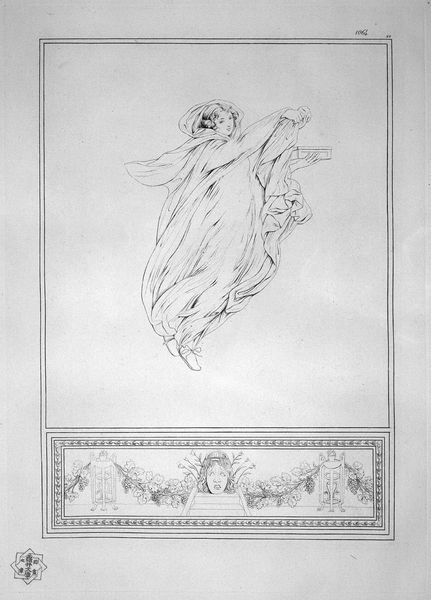 Giovanni Battista Piranesi created this print, "Bacchante leading a mirror." Notice the composition: the floating figure of the Bacchante occupies the central space, framed by a simple rectangular border. The lines are delicate, yet they convey a sense of dynamism through the flowing fabric and the figure's pose. The ethereal quality is reinforced by the lack of grounding, as the Bacchante seems to drift weightlessly. Consider the mirror she holds. Mirrors reflect and invert, suggesting a questioning of established forms and values. In structuralist terms, the mirror introduces a play of binary oppositions—real versus reflected, subject versus object. This visual motif challenges viewers to consider the instability of identity and representation. The use of line and form prompts us to question fixed meanings and engage in new perspectives, disrupting traditional modes of perception.