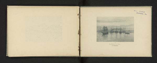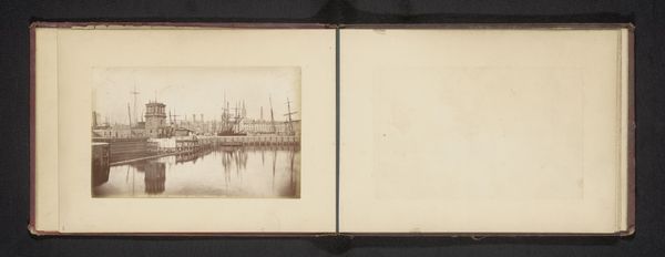 Editor: Here we have an interesting spread from an album showcasing two photographs called "Twee gezichten op de universiteitsgebouwen van de universiteit van Glasgow," which translates to "Two Views of the University Buildings of the University of Glasgow" taken before 1891 by an anonymous photographer using albumen print technique. They’re presented side by side, almost like a diptych, but the photos on the left page are much fainter. They have this atmospheric, almost dreamlike quality. What catches your eye in these images? Curator: Well, immediately, I’m struck by the ghostliness of those faded images on the left. It’s like seeing echoes of history, literally fading away on the page. They whisper of the passage of time, a very physical representation of memory, don't they? While the other two views capture the stoic architecture bathed in a light that suggests, to me, not just landscape, but Pictorialism in art. I can’t help wondering, were those lighter images intentionally ephemeral, a kind of meditation on impermanence, or is that simply a quirk of preservation? Editor: That's a really fascinating way to look at it. I was initially just thinking about the composition of the cityscape itself, but your idea of "impermanence" is very powerful, almost a kind of symbolic gesture. Do you think the photographer would have intentionally created that effect? Curator: Perhaps! The very nature of photography at that time was so steeped in the alchemical – experimenting with chemicals and processes to conjure images. I think there's an argument to be made that they might have embraced a bit of happy accidents and serendipity too. I love how these faded prints invite that speculation! What were you noticing about the cityscapes themselves, beyond my ramblings? Editor: I was intrigued by the almost mundane, everyday feeling, in contrast to the grand architecture. It makes it feel less like a formal portrait and more like a candid glimpse. Seeing your point of view opens up a richer understanding, not just of the depicted buildings but also of the passage of time. Curator: Exactly! And that blend, that intersection of time and space, that’s where the magic often lies. Thanks for your perspective, as it always inspires further pondering.