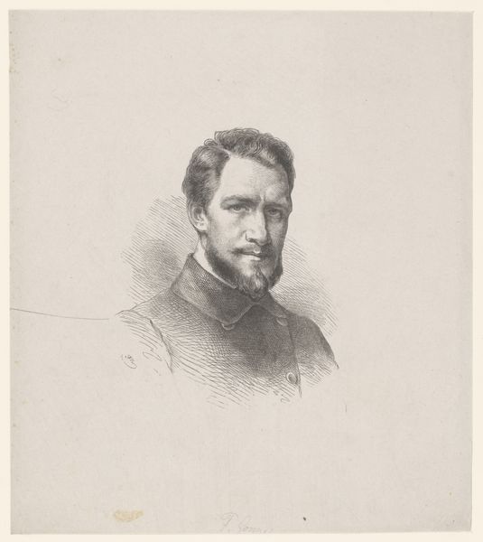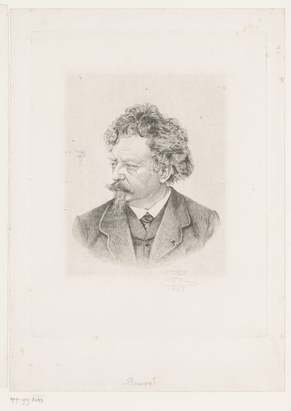Editor: So, here we have Karl Meunier’s 1888 "Portret van Gustave Bruylants," created with graphite and pencil, a drawing turned into a print, if I'm reading that right. I find the portrait rather...stern, almost confrontational, even though it is in profile. How do you read this image, and perhaps, its cultural setting? Curator: It’s a fascinating piece, isn't it? Considering Meunier’s background and the late 19th century, this portrait has much to say about the era’s visual culture and societal values. Notice the direct gaze even in profile, signaling status. The late 19th century witnessed the consolidation of the bourgeois class, and portraiture became a powerful tool for asserting their presence in the public sphere. Doesn't Bruylants seem almost to be aware he is on display? Editor: Definitely! Knowing that helps. It isn't just a likeness; it's a performance of status, and art participates in making that happen. Are there visual clues about his status beyond that piercing gaze? Curator: Certainly! Think about academic art. Meunier’s style, highly realistic, evokes a certain gravitas. And it served the purpose of commemorating individuals, cementing their legacy. What effect does that have on us, viewing it now? Editor: It almost makes him into an "icon." Before, I just saw a face, now it's more about this figure within a structure of class and image. The artist and patron are performing for society, and shaping that society as they do so. I think I will spend more time with this one. Thank you! Curator: My pleasure! Recognizing the social functions of art certainly changes the way we look.