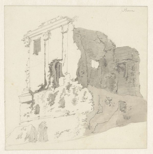 Curator: What strikes me is how ghostly and ethereal this print appears, despite the subject being a substantial, real place. Editor: Absolutely. What we are looking at is "Thermen van Diocletianus," a 1618 etching by Claes Jansz. Visscher. It's a cityscape rendered with this incredible attention to line and detail, but filtered through, perhaps, the memory of something long gone. Curator: The Baths of Diocletian were once monumental symbols of power. Here, though, they feel…ruined, softened. It’s like Visscher isn’t showing us the height of the Roman Empire, but more like a dream, perhaps of its inevitable decay. What purpose could these buildings have once served? How are they experienced today? Editor: This perspective invites us to consider Rome through a very particular lens. In 1618, the Baths were more ruin than monument. Visscher emphasizes the dilapidation, doesn't shy away from showing nature reclaiming its space among the stones. The structure might also speak to social dynamics within cities over time. Who are the modern inhabitants here, what stories might they hold? Curator: There's an openness to it, even with the precise line work. The etching technique almost mimics the effect of light filtering through ancient spaces. I mean, those geometric lines could seem quite rigid, but the overall impact is softened. Almost melancholic, don't you think? Editor: Definitely melancholic. The print situates us on the margins, hinting at narratives of decline, but perhaps also, the opportunity to re-evaluate what "grandeur" truly means. There's a subversive element to depicting something built by an emperor and reclaimed by common, everyday scenes. Curator: I find myself contemplating this question a bit more… is it more beautiful, the imposing strength of the empire, or what persists of it later, like this beautiful and slightly tragic whisper from centuries before. Editor: An excellent point, one to hold onto, as we step into our own spaces within and without the remnants of history.
