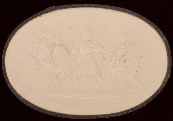 Curator: Here we have Luigi Pichler's intaglio, "Hercules between Virtue and Vice," held at the Harvard Art Museums. The artwork’s precise date is currently unknown. Editor: It feels like a whispered dream, doesn't it? All those soft, swirling forms in creamy white. Curator: Intaglios like this, carved in reverse, were often used as seals, asserting authority and social standing. The imagery, derived from classical antiquity, would resonate with educated elites. Editor: Right, but think of Hercules stuck between a rock and a hard place, such a human moment immortalized in miniature. I can't help but feel for him. Curator: Indeed, the piece encapsulates a timeless dilemma, the constant negotiation between moral rectitude and base temptation. A very public lesson on a private token. Editor: It is a tiny world of decisions. I'll be pondering that seal for a while.
