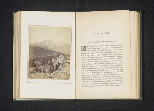 Editor: This gelatin-silver print, taken before 1874, showcases a "Landschap bij Boulder, Colorado" by J. Collier. It has such a serene feeling; it’s this small window into a vast landscape. What do you see in this piece that I might be missing? Curator: This photograph, while seemingly a straightforward landscape, resonates deeply within a specific historical and social context. I see not only the grandeur of the American West, but also the ideology of Manifest Destiny quietly at play. How do you think images like these contributed to the narrative of westward expansion? Editor: That's interesting, I hadn't thought of it that way. I guess these beautiful images made the West seem inviting, like a place ripe for the taking? Curator: Exactly! Collier's photograph, in its technical and aesthetic choices, also participates in a narrative that often erases the Indigenous presence, transforming it into an "untouched" wilderness ready for settlement and resource extraction. Consider how the light falls, the chosen perspective, even the very act of naming the location. What stories do those details obscure? Editor: So it's not just a pretty picture; it's actively shaping a particular understanding of the land. It really underscores the power dynamics at play in the creation and consumption of art. Curator: Precisely! It asks us to critically examine the relationship between landscape, representation, and the historical forces that shaped both the land itself and our perception of it. We have to consider its effect and lasting consequences within this historical scope. Editor: I never would have considered that by myself! Now I see so much more. This photo definitely holds more significance than what meets the eye. Curator: Exactly. I'm glad we unpacked that!