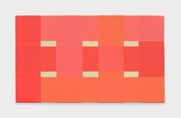 Yui Yaegashi created this untitled painting on canvas, measuring about 18 by 10 centimeters. It's an arrangement of pink rectangles, separated by white lines, which appears to explore spatial relationships and color theory. Working in Japan, Yaegashi is part of a generation of artists responding to a globalized art world, often engaging with the legacy of minimalism and abstraction, movements that questioned traditional artistic values and the role of institutions. In post-war Japan, these ideas resonated with a culture grappling with modernization and Western influence. Yaegashi's choice of simple geometric forms and a limited color palette can be seen as a commentary on consumer culture and a rejection of the excesses found in contemporary art. Her work encourages us to reconsider the very structures that define what art is. The meaning of art constantly shifts with its social and institutional context. By examining the cultural and economic conditions, alongside gallery records and critical responses, we can gain a richer understanding of Yaegashi's contribution to contemporary art.
