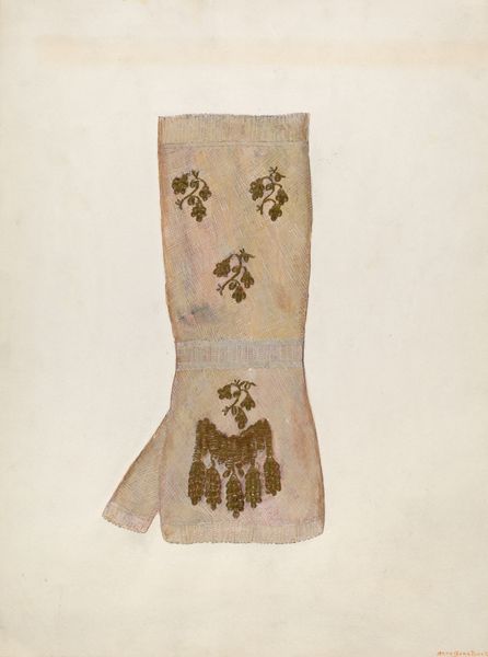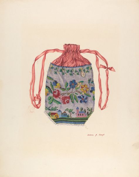 John Cooke rendered this watercolor painting of a reticule, or small bag, sometime in the late 19th century. During this period, reticules were essential fashion accessories, and signifiers of femininity. Cooke's delicate rendering draws our attention to the reticule’s function as a highly gendered object. Beyond its practical use for carrying personal items, the reticule performed a crucial role in constructing and communicating a woman's identity. The reticule often became a canvas for expressing personal identity through its design. A reticule might carry overtly feminine patterns but could also act as a subversive canvas for women to express sentiments that would otherwise be repressed. The choice of materials, colors, and embellishments reflected a woman's taste, social standing, and even her political affiliations. Consider how a seemingly simple accessory could speak volumes about a woman's place in the world, and how she navigated the expectations placed upon her.