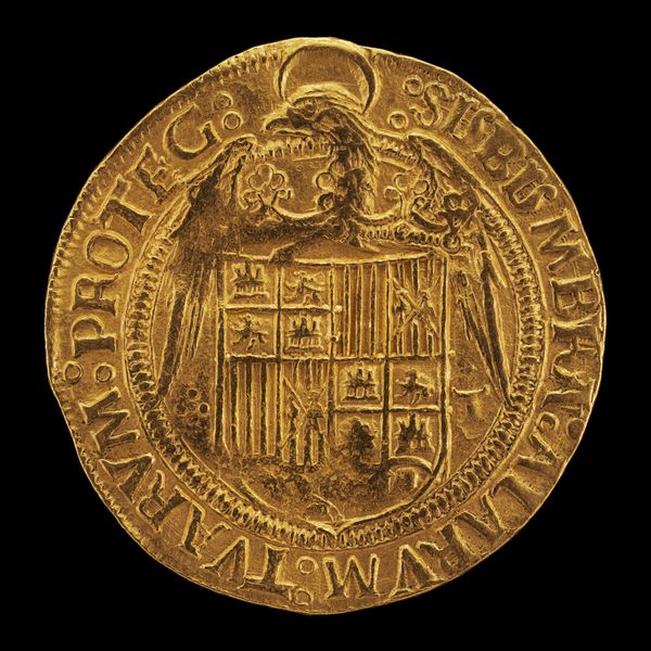 Curator: Here we have Jacob Jan van Goor's bronze relief, "Inwijding van het nieuwe gebouw van het Koninklijk Koloniaal Instituut te Amsterdam 1926," or, in English, "Dedication of the new building of the Royal Colonial Institute in Amsterdam, 1926." It’s a mouthful! What's your initial impression? Editor: My first thought is of something… heavy. Both literally, given the material, but also symbolically. That monumental building, meticulously rendered on a small circular plane—it feels imposing. Curator: Absolutely. And perhaps that heaviness speaks to the gravity of the occasion. A grand building deserves a commemorative piece. What I find interesting is how van Goor condenses such an imposing structure into this circular format. The detail is astonishing. Editor: The composition is doing a lot of work here. The building, floating above what appears to be crests or emblems, anchored by text… it feels deliberately staged to convey power, doesn't it? Especially considering the Institute’s role in Dutch colonialism. Curator: Precisely. It’s impossible to separate this image from the historical context of colonialism. The Royal Colonial Institute was essentially a hub for the study and promotion of Dutch colonial interests. Does the artwork implicitly celebrate that endeavor? Perhaps. I also think its celebration can lead to critical reflections, it can start a conversation. What about you, does it inspire reflections, and if so, of what nature? Editor: It definitely sparks reflections. I see it as an artifact of a specific moment, a visual representation of institutional pride intertwined with a complicated colonial legacy. The architectural rendering speaks to a sense of permanence and authority, yet viewed through a contemporary lens, that authority is profoundly problematic. It really showcases the institution’s need to project authority over its actions. Curator: The medium is fascinating here too. Why a bronze relief? Bronze evokes history, permanence, value. Was it an attempt to immortalize not just the building, but also the ideas and systems it represented? Maybe they wanted this thing to survive! It will trigger future generations! Editor: Yes, the choice of bronze adds another layer. It suggests a desire to solidify the Institute's place in history, even as that history is being re-examined and contested today. To future audiences I want to say that the colonial institute does no longer exist, its functions have been repurposed, rebranded, but the memory remains... Curator: I agree. It’s a complex piece, inviting us to contemplate not just the artistic skill involved, but the uncomfortable truths about the past. It also inspires further research about colonialism. Editor: It really highlights how art can function as both a celebration and a document, inviting critical engagement with history and its ongoing reverberations. And more pieces like these are important, even if difficult, because they do inspire engagement!