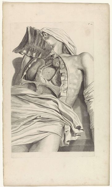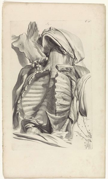 This anatomical study of the upper body was made by Pieter van Gunst, using engraving techniques. Look closely, and you can see the extraordinary detail van Gunst achieved. Engraving involves using a tool called a burin to incise lines into a metal plate, which is then inked and printed. The fineness of the lines determines the tone and texture of the image, giving it a crisp, almost photographic quality. This print is not just a feat of technical skill, but also a product of its time. In the 17th and 18th centuries, the rise of scientific inquiry created a demand for accurate visual representations of the human body. Anatomical illustrations were crucial for medical education, and printmakers played a vital role in disseminating knowledge. This print reflects both artistic skill and scientific curiosity, blurring the lines between art, craft, and science. Appreciating the making process helps us see this image not just as a depiction of the body, but as a window into the history of knowledge and representation.