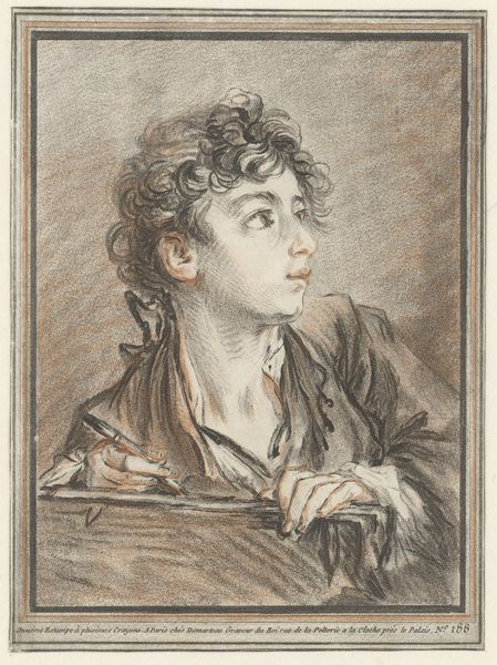 Curator: Looking at this canvas, titled "Colin Alexander, painter" and attributed to Théodore Géricault, the first thing I notice is the brooding intensity. The light is concentrated on the subject's face, but even in that light, there's a profound melancholy. What's your read on it? Editor: My immediate response is the way Géricault works with the oil paint. It’s quite visceral; you can see the application, the blending of the pigments. The material quality really draws me in; look at those layered, fluid brushstrokes depicting his hair! It gives the portrait an active feeling. Curator: Indeed. The romantic temperament is so palpable here. This piece arguably plays with the trope of the artist as a tortured soul. There’s a dramatic contrast in tone, that hints towards his complicated inner self and the overall creative experience during the Romantic Era. Editor: Definitely. The layering is key; building up shadows, carving the figure from the dark ground with controlled strokes of impasto, that blue scarf rendered with such casual dynamism, probably a remnant off cut... Curator: You're highlighting the materials' expressive capacity and their implicit connection to the social history of art production and display. Did such casual dynamic portrayal in his portraits allow greater acceptance within prominent artistic circles and Salon audiences of the time? Editor: Precisely. His ability to construct his own persona as a craftsman mirrors the Romantic ideal, a bridge of classic technique, contemporary expression. A bold and calculated manipulation of materiality and style. Curator: It makes you consider the image’s role, not just as a rendering of an individual, but also as a crafted identity. And how he saw himself within the shifting cultural landscape of art. Editor: It’s a dialogue between the hand, the material, and the persona, crafted carefully for both the sitter and the artist. Curator: So, as we step away from the portrait of Colin Alexander, what resonates for me is the intersection of historical forces shaping art production and a very individualized representation. Editor: And I am struck by how the deliberate application of paint can convey not only form but also a potent emotional landscape; Géricault transforms materials into more than just pigments, but into expressive social commentary.