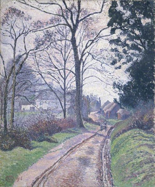 Lucien Pissarro made this painting of Apple Blossom, Riversbridge Farm, in Blackpool, Devon, with oils. Look at how the painting is built up from so many tiny marks! The texture here feels soft, almost like it's made of velvet. The colors are muted, dreamy. Notice how he uses lots of little brushstrokes of different colors to create the impression of light and shadow. It's like he’s letting us see the world through a hazy, impressionistic lens. Focus on the way the light catches the blossoms on the trees. It's not just white, but a mix of pinks, blues, and purples. These colors give the scene a sense of depth and vibrancy. Pissarro worked alongside artists like Monet, but this has a particularly English feel to it. It reminds me a little of Walter Sickert and the Camden Town Group, who also loved to find beauty in the everyday. Art’s just one big conversation, right? This painting invites us to slow down and appreciate the subtle beauty all around us.