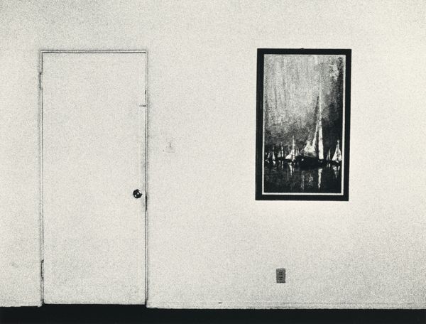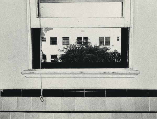 Curator: Standing before us is Steve Kahn's photographic work, "The Hollywood Suites (Windows) #15," created in 1976. Editor: It strikes me immediately as melancholic. Those two windows side-by-side, but one seemingly intact while the other…ravaged. There’s such a stark contrast; it’s quite unnerving. Curator: Kahn, during that period, was deeply invested in exploring architectural facades, especially in Hollywood. His focus on urban surfaces offers social commentary that can get quite…abrasive. Editor: Absolutely. The materials, the sheer fact it’s a photograph focusing on peeling paint and maybe broken glass– the image refuses idealization. It points instead to the grit, the labor, and inevitable decay of structures, like so many of Hollywood’s promises, perhaps? Curator: Yes, consider the implications of capturing those elements. It moves past conventional street photography that romanticizes, it is about textures but the story they convey through deterioration. There's an honesty, if brutal at times, in exposing urban erosion, don’t you think? Editor: Undeniably, and the choice of black and white strengthens that, stripping away distraction and highlighting texture and light. We see only what matters: construction and deconstruction—simultaneously! Curator: Moreover, this almost forces us to become archaeological investigators…the social commentary in his art can be viewed as almost scientific in this method. You look and the city speaks! Editor: Precisely. Through Kahn's lens, we don't see simple photographs; rather evidence of making. There's real labor reflected back onto labor-- Steve Kahn out there documenting structures in labor and disrepair! Curator: Agreed, after diving into how these urban scenes mirror greater concepts of fleeting grandeur and social reflection…I will never glance casually at city windows again! Editor: Exactly! Here we witness, literally, material realities made profoundly, almost poetically, visible. It speaks to me far beyond any initial impression.